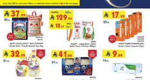 حافل ارز كومولينو ، الوها ارز ياسمين ، و كما يوجد في العرض . ذائقة ارز مزة بسمتي ، السفير ارز مزة بسمتي ، و كما يوجد في العرض . نخلتين زيت نباتي ، نور زيت دوار الشمس ، عافية زيت ذرة ، العربي او شمس زيت ، ابو زهرة زيت الدوار الشمس ، عافية زيت الدوار الشمس ، عافية بلس زيت ، شروق زيت دوار الشمس ، و كما يوجد في العرض . حياة او صني زيت الطبخ والقلي ، بيتوتي  و كما يوجد في العرض . زيت زيتون مكرر ، عافية زيت زيتون بكر ، و كما يوجد في العرض . ساسو زيت زيتون ، رحمة زيت زيتون بكر ممتاز