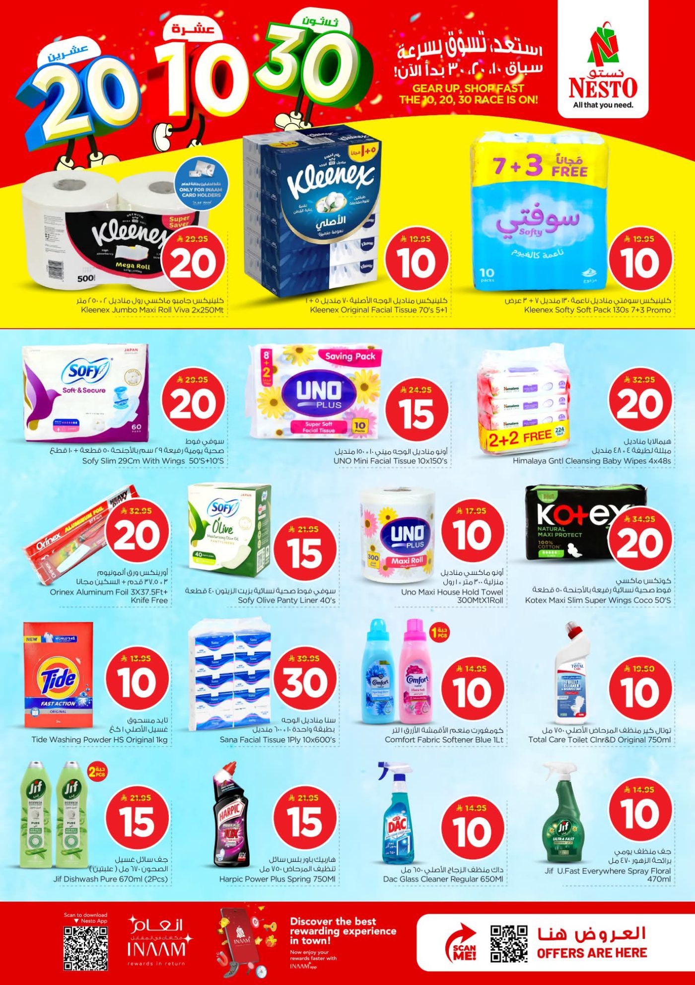 مجلة عروض نستو الرياض الأربعاء 26 مارس 2026 الموافق 6 شوال 1447 عروض 10 , 20 , 30 ريال وفر ميزانيتك.. واستقبل العيد ببيت عامر! ” يا هلا بالعيد ويا محلى طاريه.. ولأننا نعرف إن العيد يعني “أطيب الأكلات”، وفرنا لكم أجود المواد الغذائية اللي تبيض الوجه قدام ضيوفكم. من رز العزائم للبهارات اللي ريحتها تعبي البيت، كل شيء تحتاجه لسفرة العيد صار بين يديك.